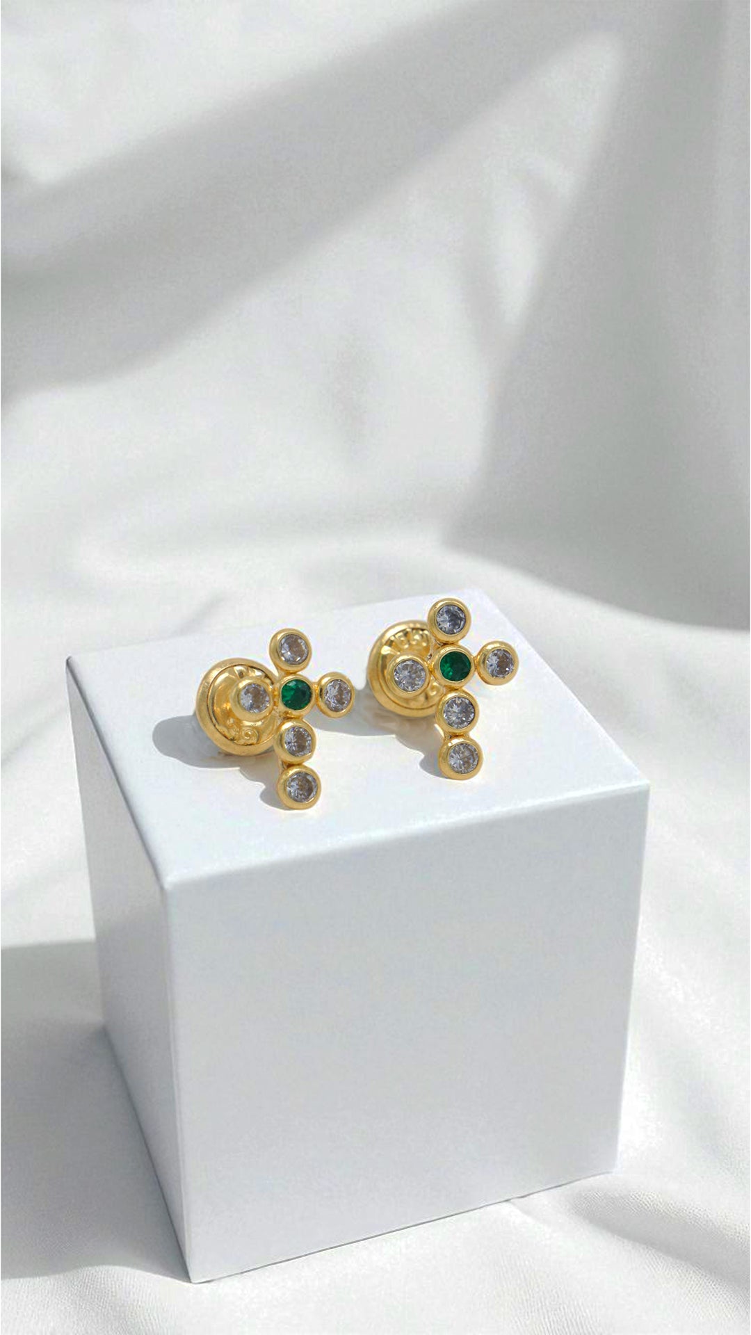 TOPOS CRUZ CON CIRCONES BLANCOS Y CIRCON VERDE